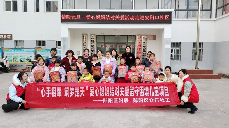 12月27日下午,郧阳区妇联联合郧阳区众行社会工作服务中心在安阳镇安阳口社区开展“守护童心幸福相伴”情暖元旦主题活动,30余位爱心妈妈及困难儿童参与此次活动。