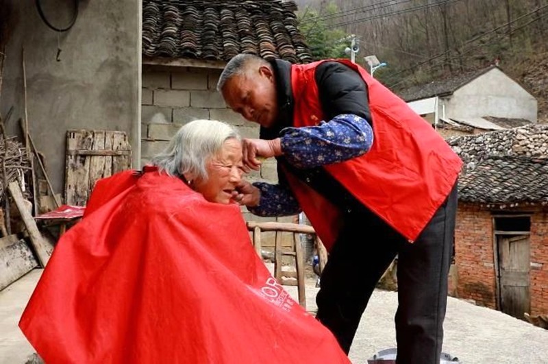 当发现乡亲们还在为理发这种小事发愁时,秦光贵内心大为触动:“共产党员如果不为人民做事,还算什么共产党员?”于是,自1985年返乡起,他就在自家堂屋门前摆起凳子无偿为老人们理发。