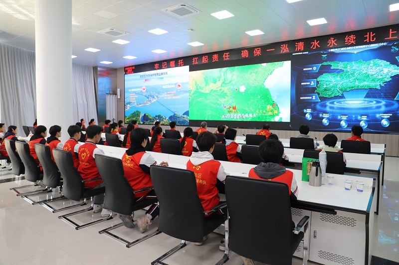 活动当天,郧阳科技学校40余名师生身着红色志愿服装,前往十堰市丹江口库区水质安全保障指挥中心郧阳区分中心,首先观看了守水护水宣传片,深入了解了汉江水资源保护的重要性和紧迫性。随后,指挥中心工作人员详细介绍了平台操作系统的功能运行情况,并讲解了监测数据在水质保护中的关键作用。通过聆听专业讲解,师生们对水资源保护的科技手段有了更直观的认识。
