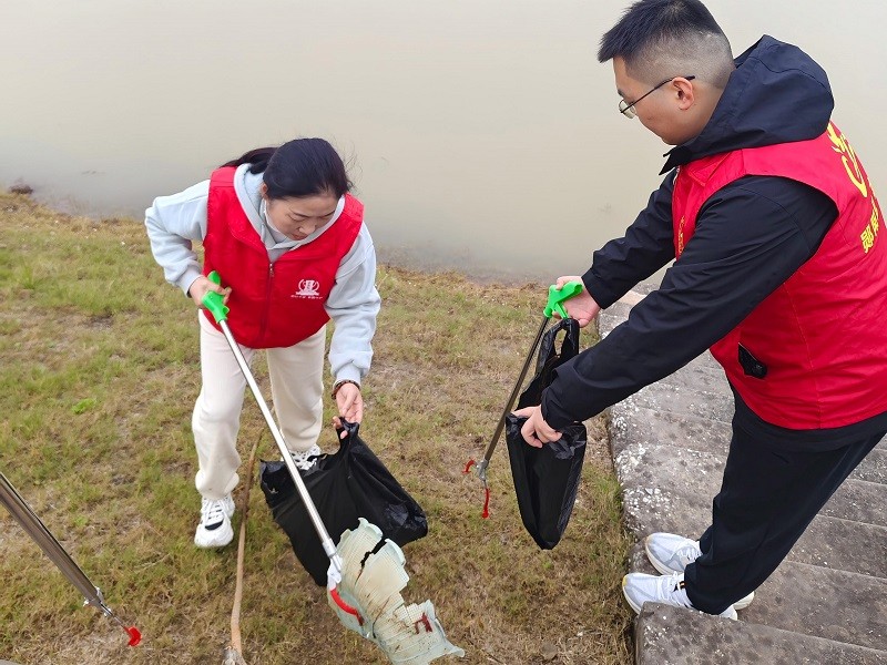 “大家注意安全啊!”带队的工作人员一边叮嘱队员,一边弯腰将岸边草丛里的白色垃圾夹进垃圾袋。志愿者们沿着汉江河畔细致巡查,不放过任何一个角落。他们认真清理散落在岸边、草丛中的塑料袋、包装盒等白色垃圾,并对河面漂浮物进行打捞,确保河道环境的整洁卫生。