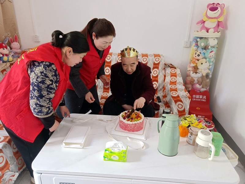 为践行孝亲敬老美德,推进困难老人关爱服务,3月27日上午,在郧阳区民政局指导下,该区众行社会工作服务中心社工走进城关镇体育场社区,为独居困难老人周大爷举办温馨生日会,传递社会温情,助力老年友好社会建设。