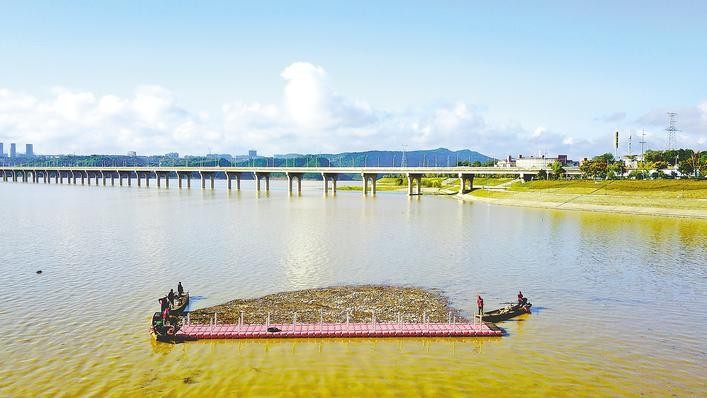 9月20日,清漂队员在丹江口库区郧阳段汉江水域清理漂浮物。连日来,受强降雨影响,十堰市丹江口库区郧阳段汉江水域出现漂浮物,郧阳区组织清漂队进行集中清理。多年来,该区严格落实河湖长制,抓好河湖巡查工作,确保“一泓清水永续北上”。