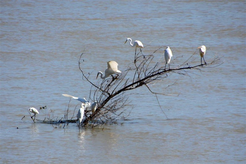 9月24日,在湖北省十堰市郧阳湖国家湿地公园,鹭鸟在湖边觅食。 连日来,受强降雨影响,湖北省十堰市郧阳湖国家湿地公园水位回升,公园内出现较多岛屿和浅滩,吸引大批鹭鸟来此觅食。该公园为南水北调中线工程核心水源涵养地,生态水域面积1743.6公顷,其中湿地面积1404.09公顷,湿地率80.53%。