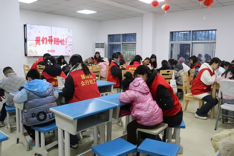 1月29日,在共青团郧阳区委的指导下,郧阳区众行社会工作服务中心在城关镇体育场社区幸福驿站、青龙泉社区党群服务中心儿童活动室,同步启动寒假公益托管班并举行开班仪式。