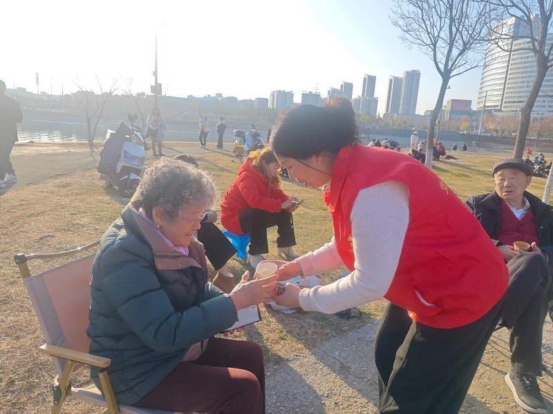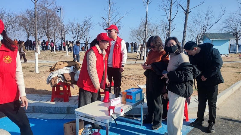 便民暖流,由我们传递。除了筑牢安全屏障外,志愿者们更将服务做到了群众心坎上。一处处便民服务点悄然设立,免费提供暖意融融的热水,为休憩的游客驱散冬日寒意;看见行动不便的老人,他们立即上前细心搀扶;遇到问路的游客,他们热情指路答疑。社区还专门加派人手,协助工作人员在周边停车场全力疏导车辆,有效保障交通顺畅与停放有序,解决了游客的“后顾之忧”。