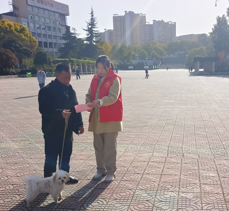 连日来,一支支由社区工作者和志愿者组成的“红马甲”劝导队,活跃在城关镇的大街小巷。他们手持《文明养犬倡议书》,在广场树荫下、小区楼栋前、街边候车亭,与遛狗居民展开“面对面”宣导。从牵绳遛狗的安全意义到及时清理宠物粪便的卫生价值,从定期接种疫苗的健康守护到避免噪音扰民的文明共识,志愿者们用“拉家常”式的温情沟通,将文明养犬规范融入日常交流场景,让文明理念听得进、记得牢。