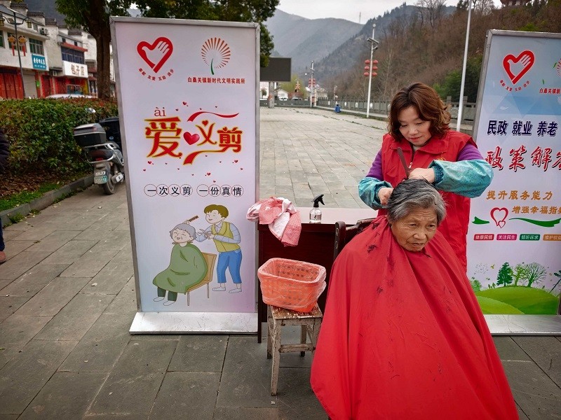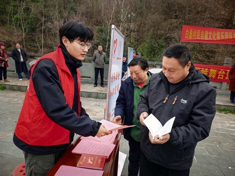 文艺表演精彩纷呈,志愿服务与政策宣讲同样贴心暖心。活动现场同步设置了多样化志愿服务岗,由白桑关镇各志愿服务队与相关部门组成的志愿队伍,为村民开展法治宣传教育、就业养老与民政医保政策解答、爱心义剪等便民服务。志愿者们耐心为村民发放宣传手册,细致解答社保缴费、医保报销、养老待遇等群众关心的热点问题,专业的义剪志愿者为老人、村民免费修剪头发,贴心的服务赢得了村民的一致好评。同时,活动以“文艺+宣讲”的形式,将乡村振兴、惠农政策、安全生产、防诈反诈、森林防火等内容融入表演与讲解,用群众喜闻乐见的方式让政策理论入脑入心,切实提升群众的政策知晓率与参与村级建设的积极性。