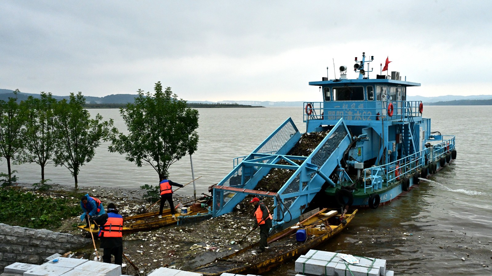 八月下旬以来,汉江流域进入华西秋雨期,持续时间较常年偏长,降雨过程频繁、雨量大,频繁的秋雨和洪水带来大量漂浮物,郧阳区汉江清漂队持续多天清漂,守护一泓清水永续北上。图为10月18日在郧阳区城关镇丹江口水库库周,汉江清漂队正在清漂。(郧阳区水利和湖泊局 王涛 摄)