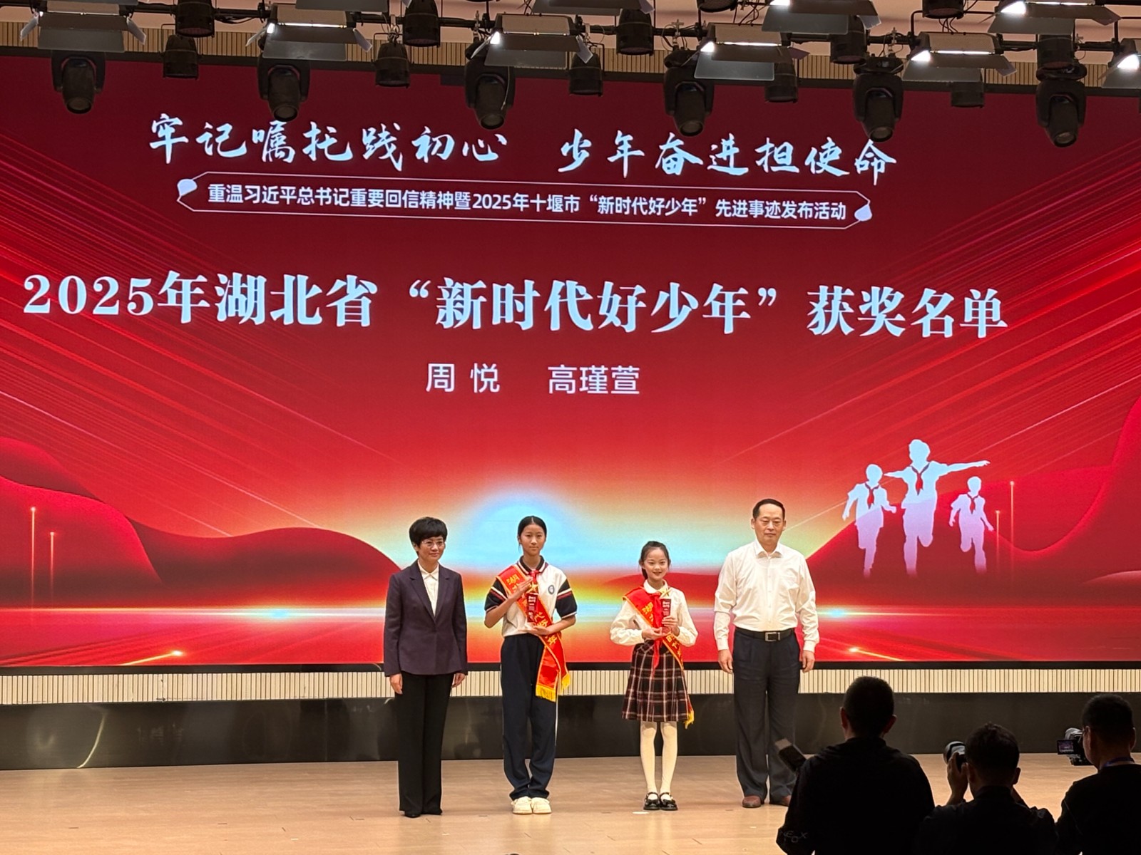 周悦,女,2013年3月生,郧阳区白桑关镇高庙九年一贯制学校六年级学生。2025年9月获2025年湖北省“新时代好少年”、2025年十堰市“新时代好少年”荣誉称号。